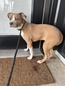 Available for Adoption – Angel is a 5yr old Female Pit/Boxer mix. Owner surrendered because she keeps getting out of her cage. She is cat friendly and we will assume dog selective. Very friendly little girl. Contact Clinton County Animal Control (618)594-4483