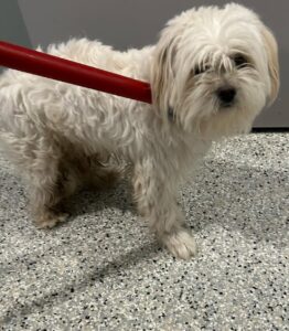Found – Airport Rd, just south of the interstate. Maltese/Lhasa Apso looking dog…