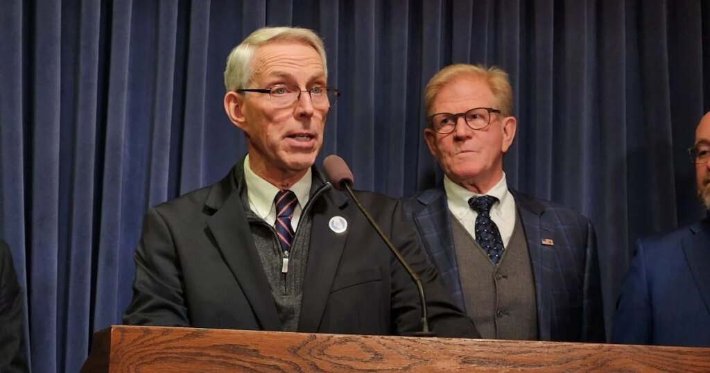 Republican state Rep. Mike Coffey held a news conference at the Illinois Capitol to discuss a bill to amend the SAFE-T Act.